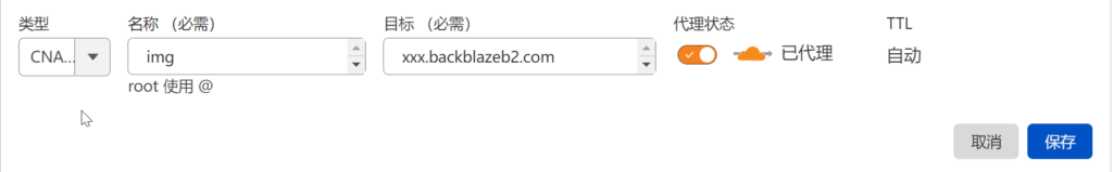 改写的目标 URL 必须使用 Cloudflare CDN,打开 Cloudflare 控制台,添加名称为 img 目标为 f000.backblazeb2.com 的 CNAME 记录,并将代理状态设为打开。待 DNS 记录生效后,就实现了 img.leonis.cc → f000.backblazeb2.com 的跳转。