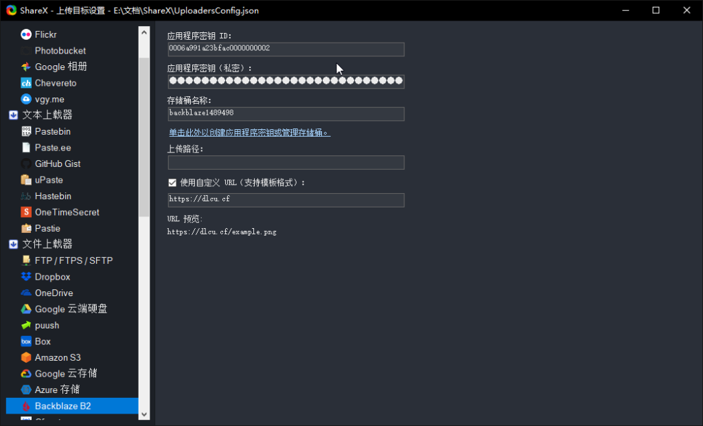 图片上传可以直接在Backblaze的网页上上传。Windows的话推荐ShareX,它支持很多容器,其中也包括B2。